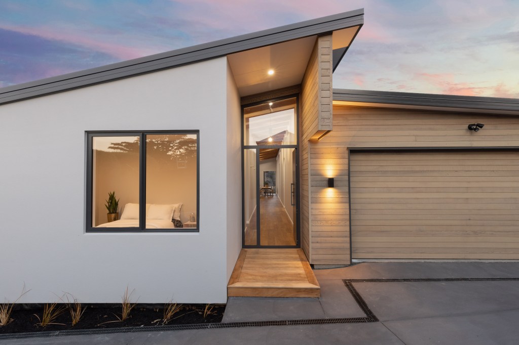 With vast views of Pegasus Bay, the property was built in 2020 on a large site above Moncks Bay in Christchurch. The brief was to construct a four-bedroom two-bathroom home with an office, separate lounge, scullery, with a living space big enough to entertain easily.